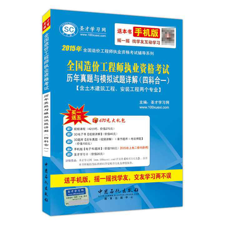 圣才学习网(www.100xuexi.com)提供造价工程师等各种工程类考试辅导方案【网络课程、3D电子书、3D题库等】。购书享受大礼包增值服务【270元网授班+190元3D电子书(题库)+190元手机版电子书(题库)+20元圣才学习卡】。扫一扫本书封面的二维码,可免费下载本书手机版;摇一摇本书手机版,可找到所有学习本书的学友,交友学习两不误。